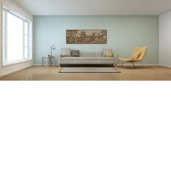 Our Pastorale Wall Tapestry brings life on the outskirts of Louis XV’s court to life in intriguing detail and living color. Originally painted by the celebrated court painter of the 18th century Francis Boucher, the tapestry depicts a lazy scene of youths whiling the afternoon away in a pastor while lying amongst the sheep and lambs. This extra wide tapestry makes a wonderful addition to an expansive wall when hung above a long credenza. The tapestry is woven in viscose and cotton for luxurious color and texture. Backed with lining and tunnel for easy hanging. Woven in Italy.