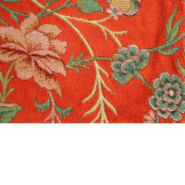 Step into the world of French elegance with this Jacquard woven tapestry cushion cover hailing from our Jouy Collection. Reflecting the enduring charm of toile de Jouy, it exudes sophistication and refinement. A striking orange background showcases bold peonies in shades of pinks, greens, and yellows. The captivating floral motif seamlessly weaves together petals, leaves, buds, and flowers, crafting an enchanting allure destined to enhance any home aesthetic. Experience the timeless beauty of French craftsmanship with this stunning piece, an exquisite addition to elevate your living space.