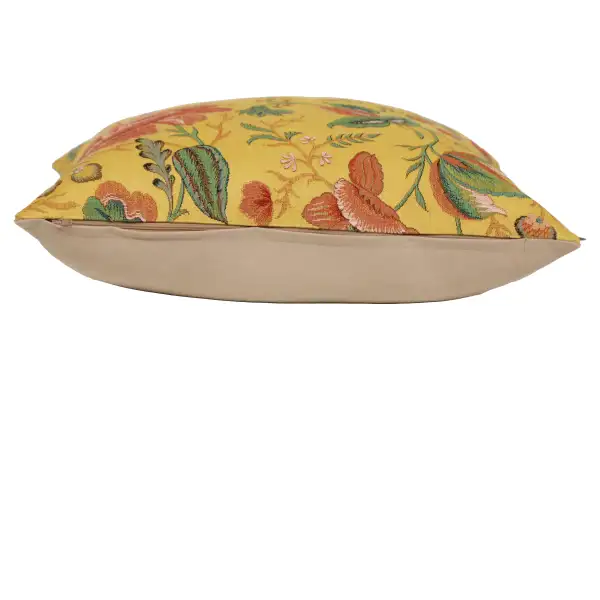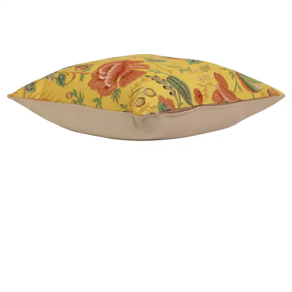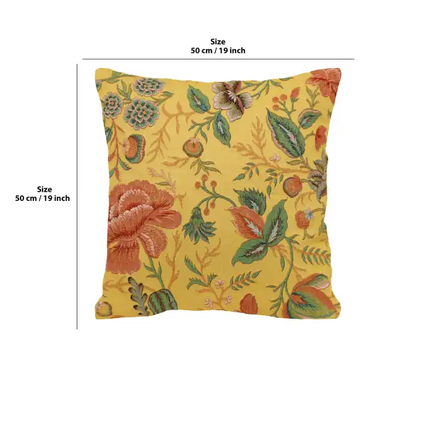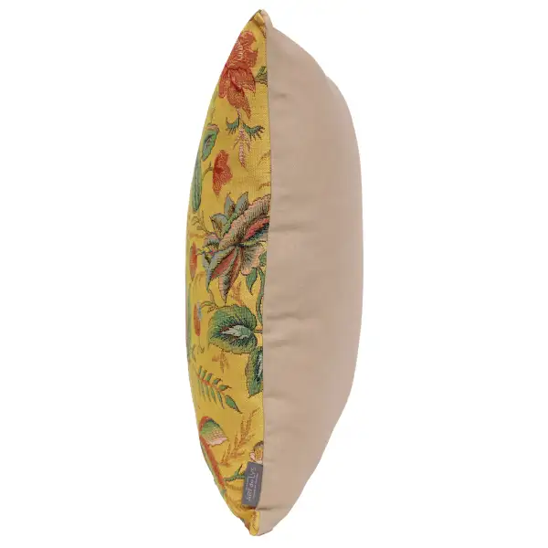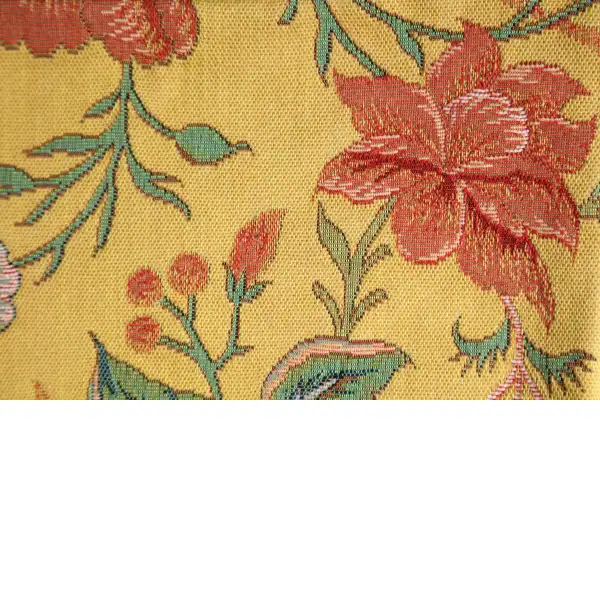 Step into the world of French elegance with this Jacquard woven tapestry cushion cover hailing from our Jouy Collection. Reflecting the enduring charm of toile de Jouy, it exudes sophistication and refinement. A striking yellow background showcases bold peonies in shades of pink, green, and yellow. The captivating floral motif seamlessly weaves together petals, leaves, buds, and flowers, crafting an enchanting allure destined to enhance any home aesthetic. Experience the timeless beauty of French craftsmanship with this stunning piece, an exquisite addition to elevate your living space.