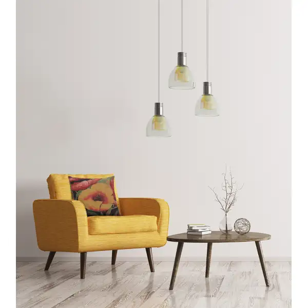 Poppies V Belgian tapestry cushion cover features a beautifully painted yellow poppy flower up close.