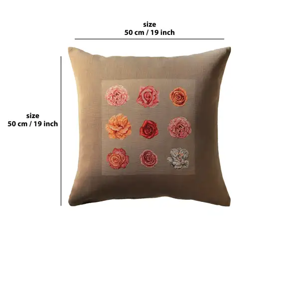 Roses I is a fine art European jacquard tapestry cushion cover displaying seven varieties of roses on a beige background to embellish your home.