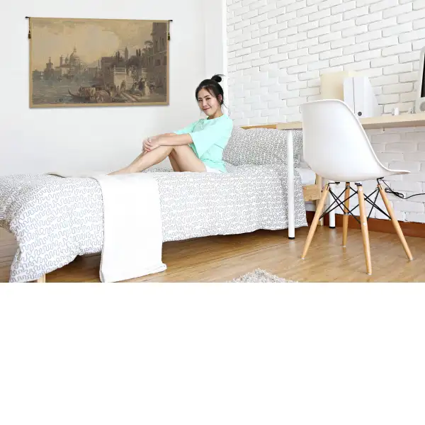 S.M. Della Salute is an Italian jacquard wall tapestry of a stunning view of Venice's Santa Maria della Salute, which translate to Saint Mary of Health;