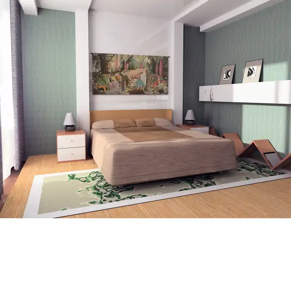 Sleeping Beauty is an Italian jacquard wall tapestry. The artwork is This tapestry is inspired by the painting by Victor Vasnetsov, Sleeping Beauty completed in 1926. Vasnetsov (1848-1926) was a Russian artist who specialized in mythological and historical subjects. He is considered a key figure of the revivalist movement in Russian art.