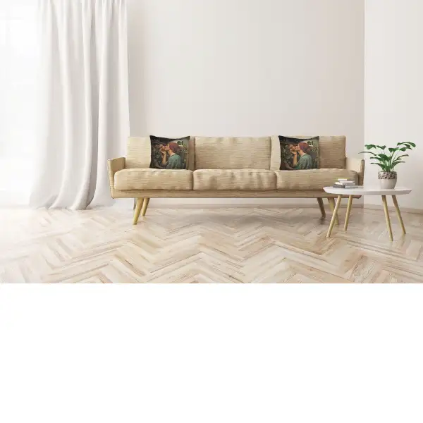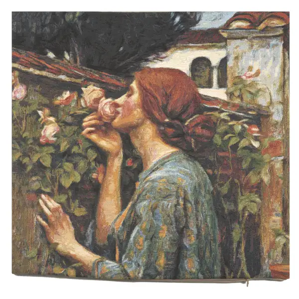 Inspired by the original painting by John William Waterhouse circa 1908, our Soul of the Rose Cushion Cover will bring a touch of Pre-Raphaelite art to your home. This enchanting tapestry cushion cover brings the painting to life with a woven texture rendered in incredibly rich color. The tapestry yarn is composed of cotton with viscose added for luminescent sheen. Decorated your favorite lounge chair, settee, and sofa with our tempting tapestry décor. Cushion cover backed with lining and zipper. Infill not included. This tapestry is woven in Belgium.