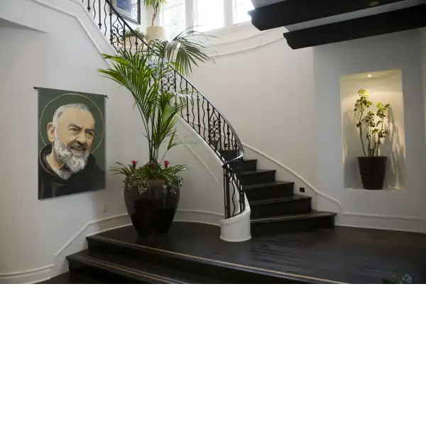 St. Pio is an Italian jacquard wall tapestry. Pio of Pietrelcina commonly known as Padre Pio, (1887 –1968) was a friar, priest, stigmatist and mystic of the Roman Catholic Order of Friars Minor Capuchin. Padre Pio became famous for bearing the stigmata for most of his life. This condition generated much interest and controversy around him. He is now venerated as a saint in the Catholic Church.