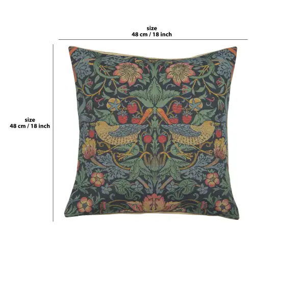 Filled with a menagerie of forest foliage and mischievous berry-stealing birds, our Strawberry Thief “B” Blue by William Morris cushion cover enchants your décor. The tapestry piece is expertly woven in Belgium by generational weavers from a soft blend of cotton, viscose, and polyester. The colors are vivid in blue, red, gold, and green hues. Purchase a pair of these pretty covers for your living room sofa or master bed. Morris founded the British arts and crafts movement during the late 1800s. Cushion cover backed with lining and zipper. Infill not included.