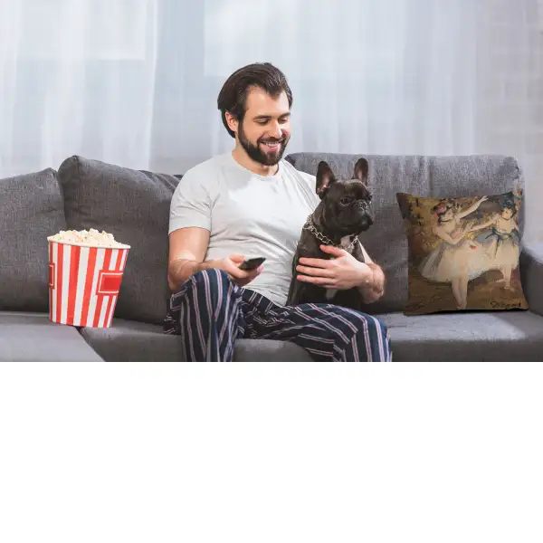 The Dancers woven European tapestry panel features the work of artist Degas.