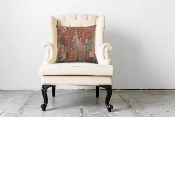 This jacquard cushion cover is an extract of the tapestry series "The Lady at the Unicorn", it’s named “The Touch”.