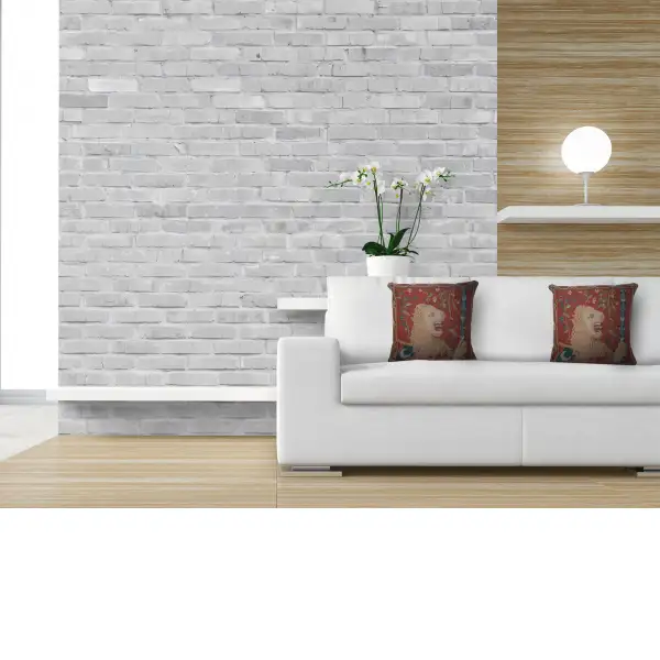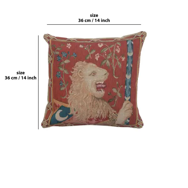 This imported jacquard cushion cover represents the lion from the famous work "the Lady and the Unicorn".