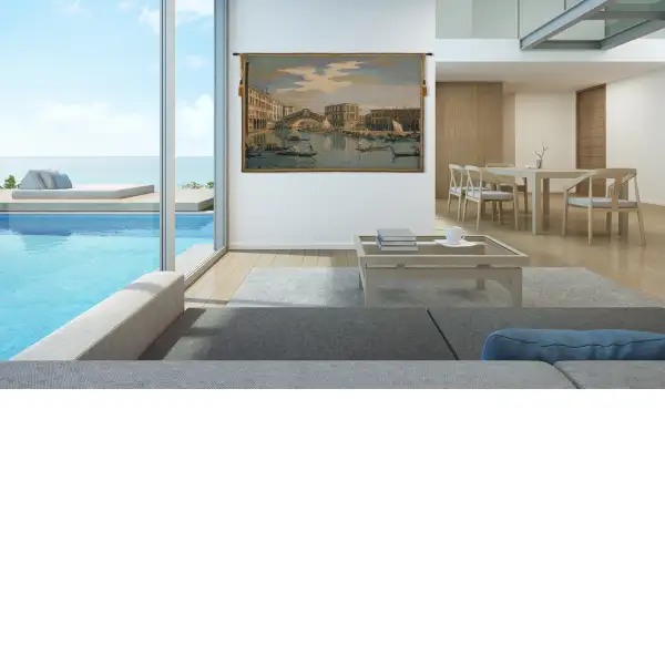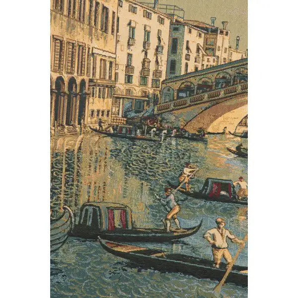 The Rialto Bridge Grand Canal is an Italian jacquard wall tapestry. The Rialto Bridge is one of the four bridges spanning the Grand Canal in Venice, Italy. It is the oldest bridge across the canal, and was the dividing line for the districts of San Marco and San Polo.