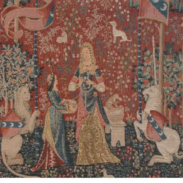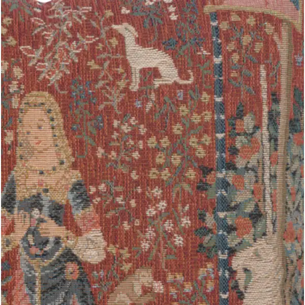 This decorative pillow is a jacquard cushion cover extract of the tapestry series "The Lady at the Unicorn". Collect the whole set to tell a story from the Medieval era.