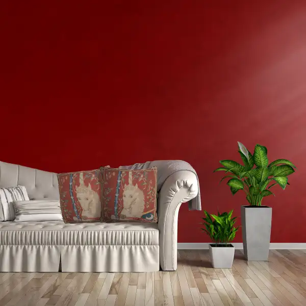 This imported jacquard cushion cover represents the unicorn from the famous work "the Lady and the Unicorn".