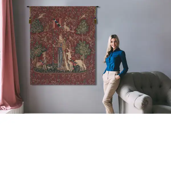 Touch, Lady and the Unicorn Belgian tapestry is one of the six tapestries in the "Lady and the Unicorn" series. This tapestry represents the sense of touch.