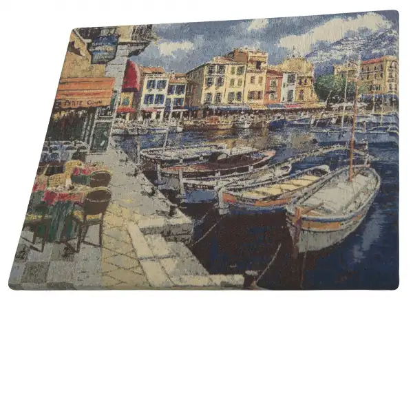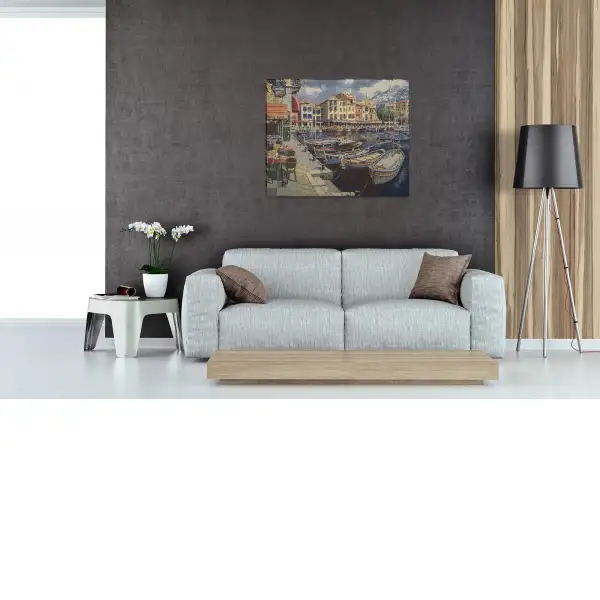 Artist Sung Sam Park’s impressionist paintings of Portofino’s harbor provide the inspiration for this stretched wall tapestry bursting with color and composition. The tapestry centers on boats tied moored at the side of the lake leading to an outdoor bistro. This enchanting wall art can be hung in such a way to give the perspective of looking to the scene from a window. Hang in the living room or above the bed for a touch of wonderment and beauty. The tapestry comes with finished back and ready to hang. It is made of cotton/viscose blend and comes ready to hang. Tapestry Imported.