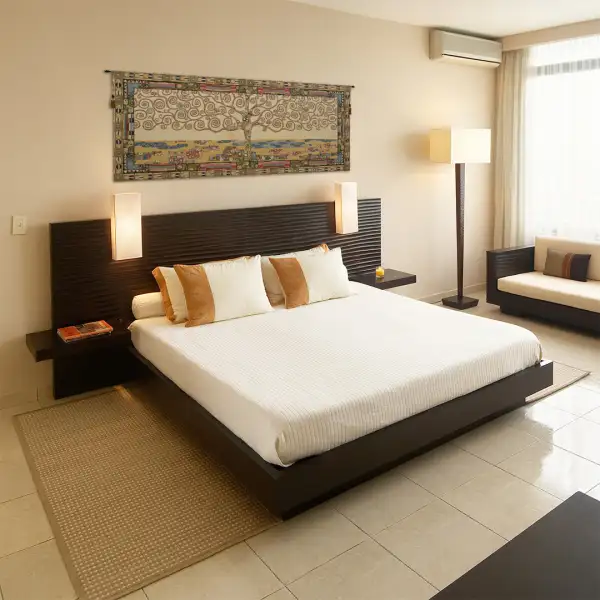 Tree of Life, Klimt is an Italian jacquard wall tapestry. The artwork comes from Gustav Klimt (1862 – 1918), a brilliant Austrian iconoclast who rose from childhood impoverishment to become an artist who enormously impacted the Viennese Secession and Art Nouveau movement. Known for elaborate, explicitly sensual paintings and murals, Klimt’s works also encompass themes of regeneration, love and death. Embedding his work with images symbolizing the freedom of art from traditional Western culture, Klimt’s eclectic range of influences included Egyptian, Classical Greek, Byzantine and Medieval styles. A forerunner of Modernism and the Art Deco movements, Klimt’s huge creative influence still resonates in modern art, decorations and jewelry. The Tree of Life was done in 1909.