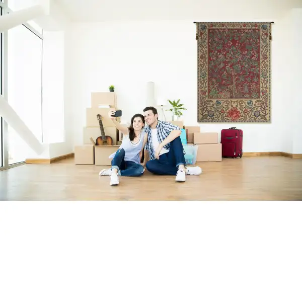 This Tree of Life Belgian tapestry is inspired by the work of William Morris, painter, author and poet. The tree of life tapestry is a mystical concept, a metaphor for common descent, and a motif in various world theologies and philosophies.