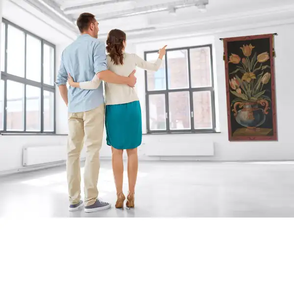 Tulips is a Belgian wall tapestry. It is an extract from the tapestry, The Presentation of Mary at the Temple, woven in Bruges in 1639; now displayed in the Notre Dame Museum at La Portiere. An elegantly impressive accent to add sophistication to your home décor motif.