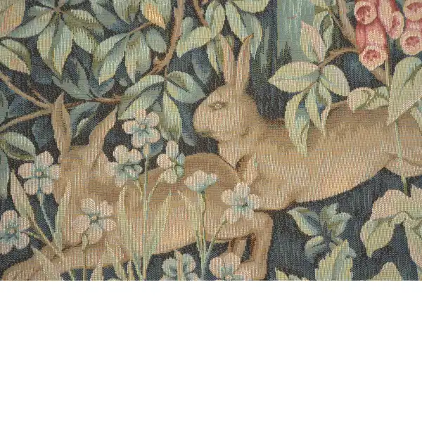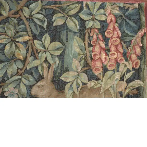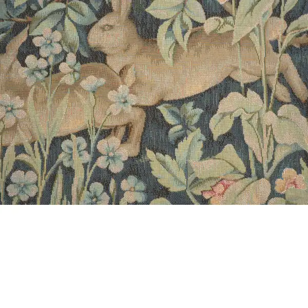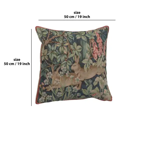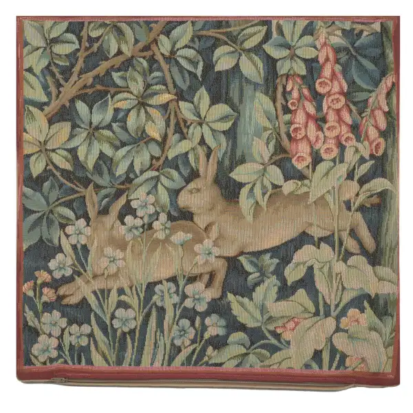 William Morris’ textiles of the 19th century portrayed the mystery and enchantment of the forest. With scenes from the British textile designer’s Forest Tapestry including fox, raven, lion, hare, and birds. Our Two Hares in a Forest Cushion Cover centers on a pair of hares hopping from one side of the canvas to the other. They are surrounded by the vines and flora of the forest shown in blues, greens, and reds. This lovely accent piece will brighten any dull sofa or chair. It also makes a lovely gift for animal or nature lovers. Pillow insert not included. Backed with solid lining and zipper closure.