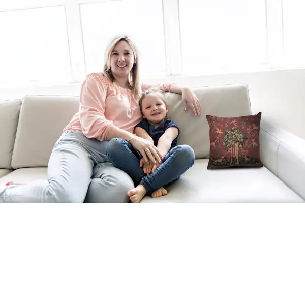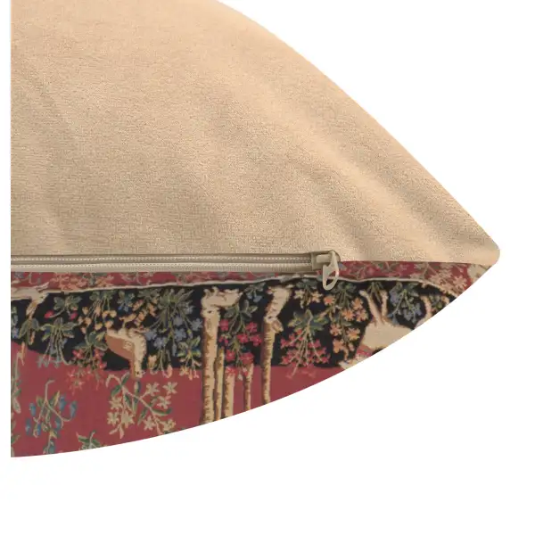 Unicorns I woven European tapestry cushion cover features a scene from the "Lady and the Unicorn" series of Belgian tapestries.