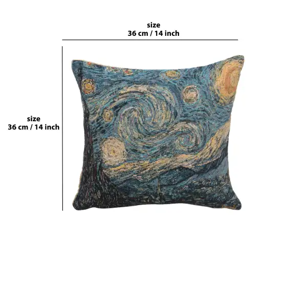 Mysterious and alluring as the artist himself, Starry Night by Vincent Van Gogh represents on our tapestry cushion cover of the same name. Rendered in dramatic blue and grey hues with a touch of golden light from the stars, the cover is woven in super silky viscose and enduring cotton with a touch of polyester. Pair this pillow cover with other ones by the same artist or different artist from the same period for an artful display on your sofa or bed. Cushion cover backed with lining and zipper. Infill not included. Woven in Belgium.