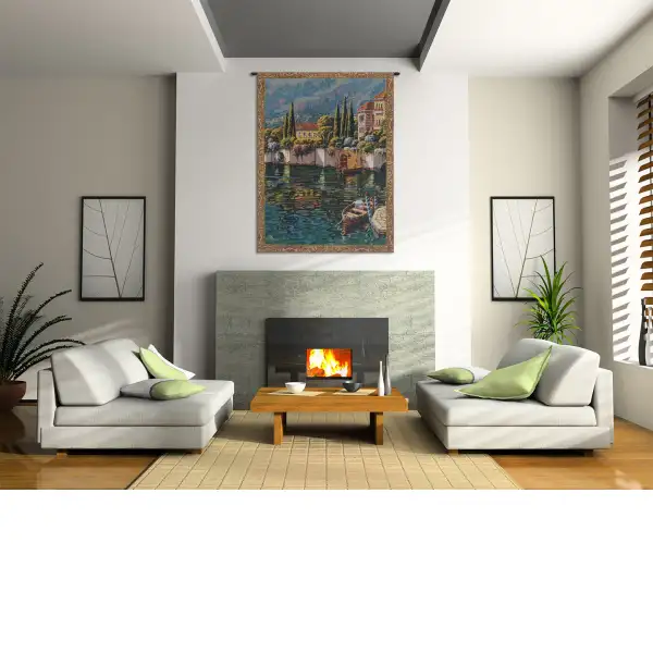 This tapestry shows a scene from Venera, the most heavenly region of Lake Como, Italy. Verena Reflections Mini is a Belgian jacquard wall tapestry featuring the work of artist Robert Pejman.