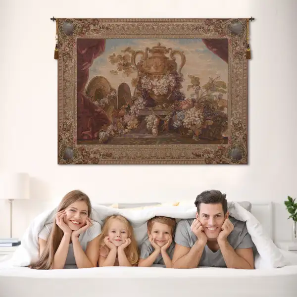 Vase and Raisins is a European jacquard loom woven tapestry. The original of this wall tapestry, woven in Beauvais in the middle of the 19th century is now in the Orsay museum in Paris.