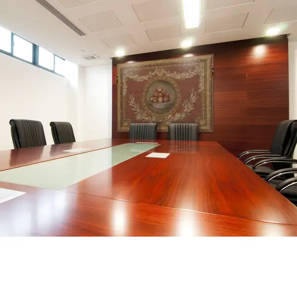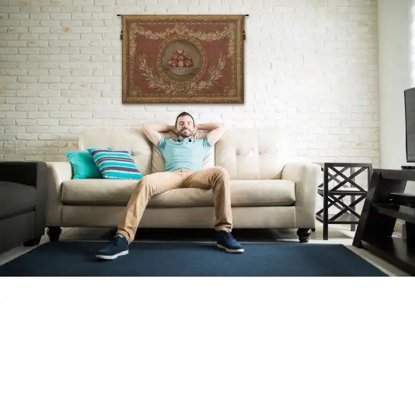 Vase Empire is an Empire style jacquard wall tapestry representing a bowl of apples centered in a medallion framing adorned with vegetable garlands.