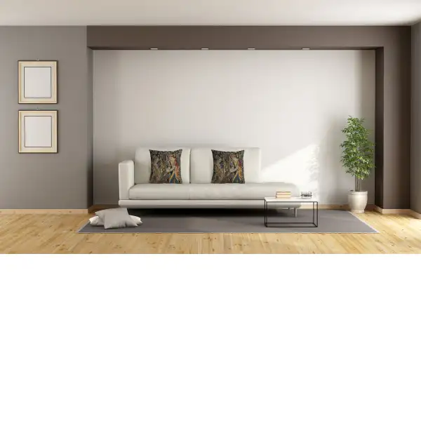 The original tapestry was woven in Tournai in the 15th century. This is a remarkable representation of the grape gathering and the wine press on a 'Mille Fleurs' background. The original is exposed at the Cluny Museum in Paris, France.