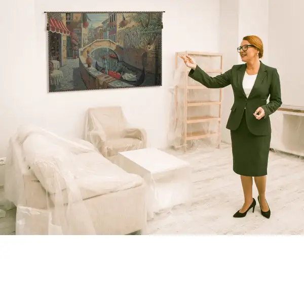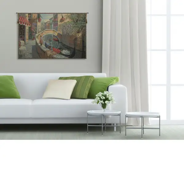 Romantic Venice has long been a source of inspiration for lovers and artists alike. We are no different; our Venezia Romantica Tapestry takes the pure sensory pleasure of dining along the Venetian canals to heart. The scene is one you will find throughout the most beloved Italian city. You can take a little piece of this sensation home with you to enjoy each day wherever, please. Hang this romantic tapestry in the breakfast room or the bedroom. It comes woven from Italy in cotton and viscose for a luxurious feel and sheen. Backed with lining and tunnel for easy hanging.
