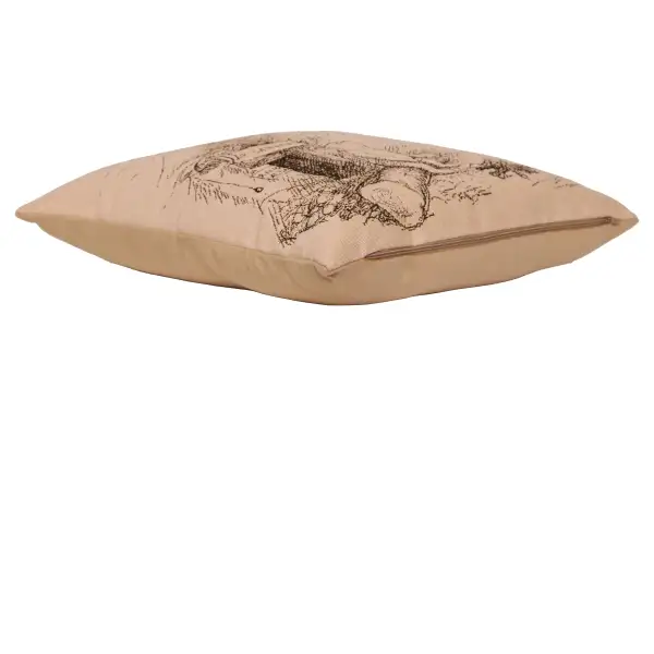 The French jacquard woven cushion cover, "Winnie at the Firecamp" captures the essence of childhood nostalgia. This decorative pillow cover features a simple yet endearing image in classic tapestry form, making it a timeless addition to any home decor. With intricate lines on a soothing beige background, the design shows Winnie-the-Pooh sitting in front of a campfire and gazing at the sky. This charming illustration recalls the cherished tales of A.A. Milne, evoking fond memories of childhood adventures and enduring friendships. Adding a touch of whimsy and warmth to any room, this throw pillow cover blends seamlessly with various interior styles. Ideal for recapturing the magic of childhood, it serves as a perfect reminder of the simple pleasures that shaped our early years.