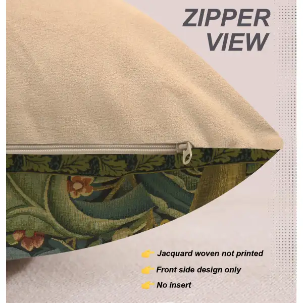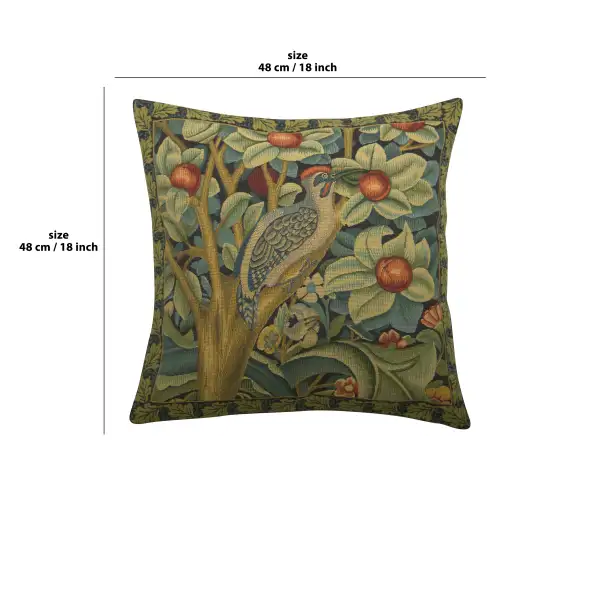 The beauty of nature will fill your room with our Woodpecker Right by William Morris cushion cover. Its woven texture and resplendent color will add a layer of lovely to the living room or bedroom. Simply tuck your favorite pillow forms into the cushion covers and perch on the sofa, bed or toss onto a lounge chair. The woodpecker is dramatically perched on a tree set against a background of wild bushes and greenery. Morris founded the British arts and crafts movement during the late 1800s. Cushion cover backed with lining and zipper. Infill not included. Woven in France.